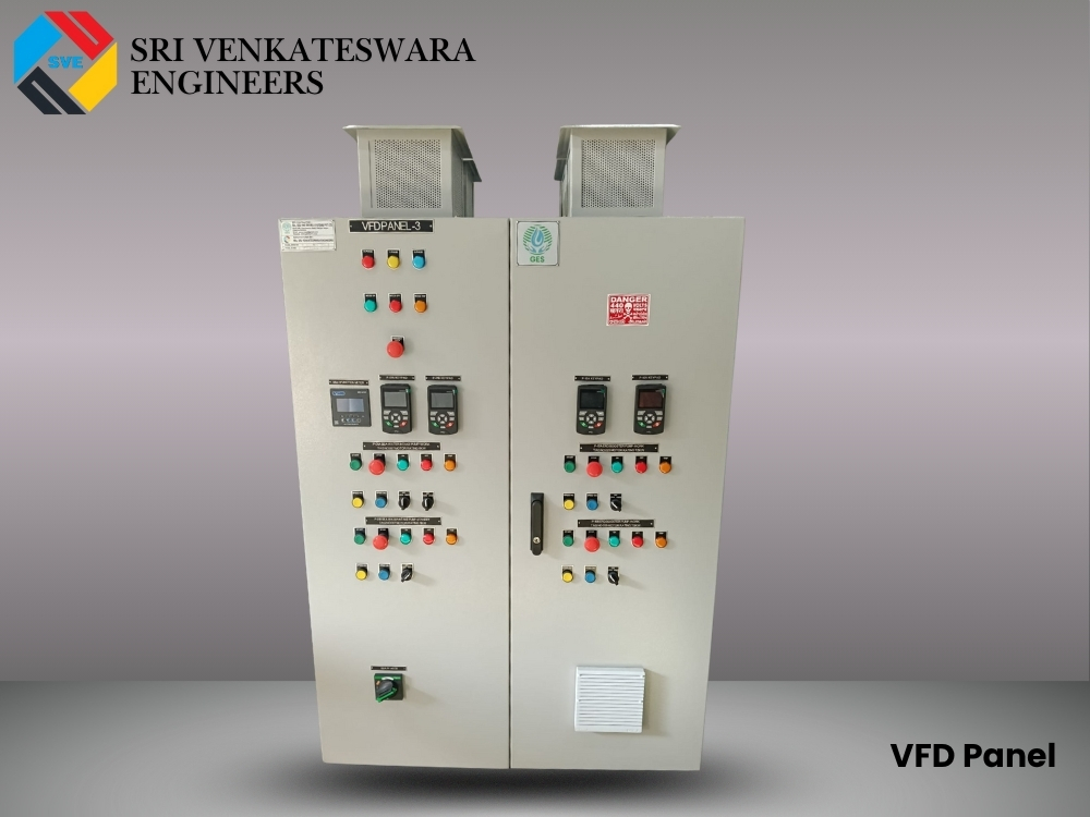 At Sri Venkateswara Engineers, we offer high-quality VFD Panels (Variable Frequency Drive Panels) that provide precise control over the speed, torque, and operation of electric motors in various industrial applications. Designed to enhance efficiency and optimize performance, our VFD Panels are integral in reducing energy consumption, lowering operational costs, and increasing system reliability. Our VFD Panels are built with advanced technology, ensuring smooth integration into a wide range of industries, including manufacturing, HVAC, water treatment, and energy management. Whether you need a panel for a single motor or for a complete automation system, we provide tailor-made solutions to meet your specific requirements.